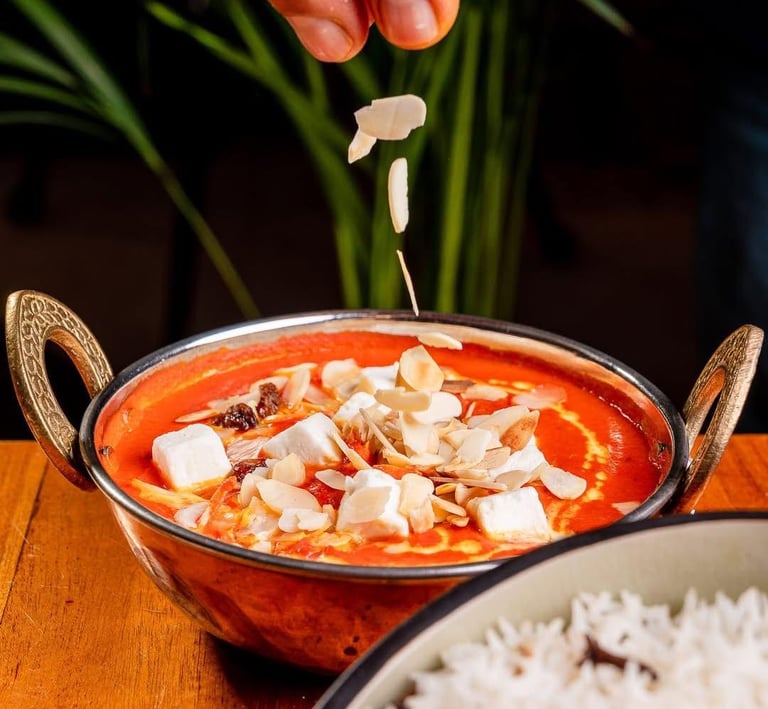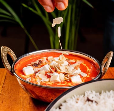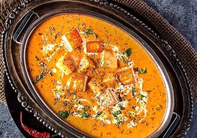 Indulge in our butter chicken and butter paneer.